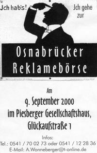 Am 9.September 2000 im Piesberger Gesellschaftshaus Glückaufstrasse 1 Info: Tel: 0541 / 700273 |